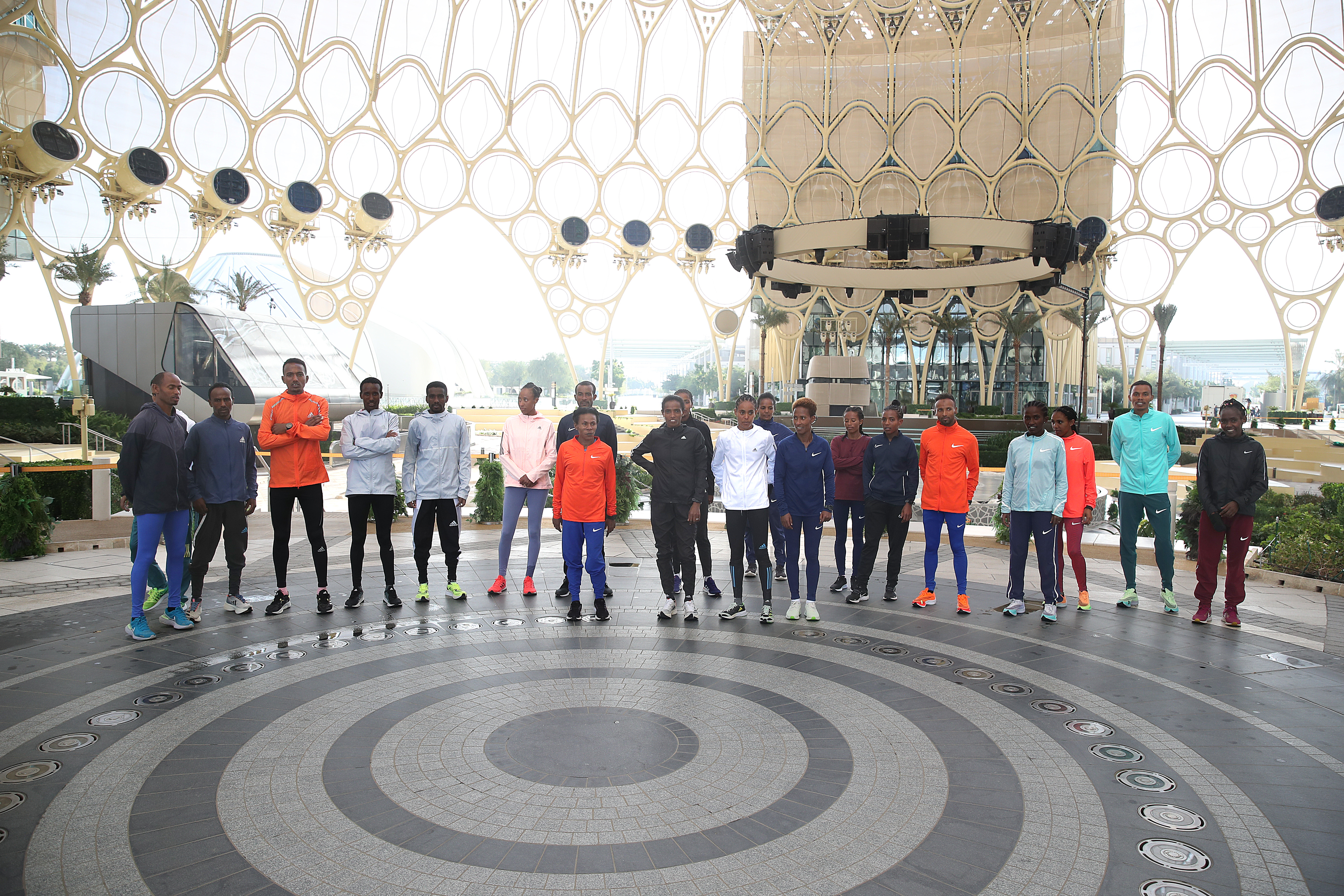 Caption: The elite athletes competing at the Dubai Marathon getting a feel of the event’s new home at Expo City Dubai.