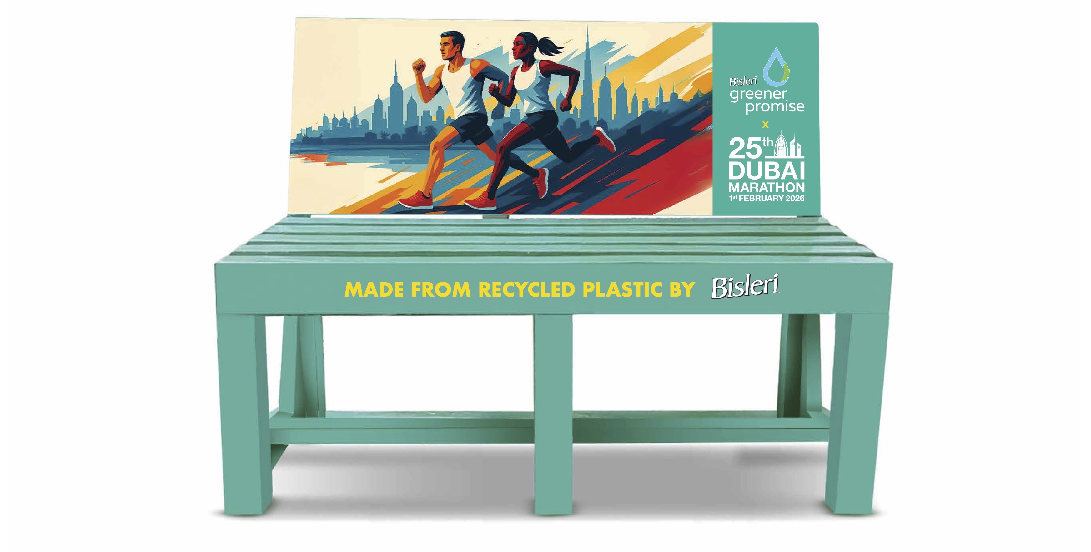 Dubai (UAE): To mark its third year as the Official Hydration Partner, Bisleri will install twenty-five benches made of recycled plastic at the Dubai Marathon under their ‘Bench of Dreams’ initiative.